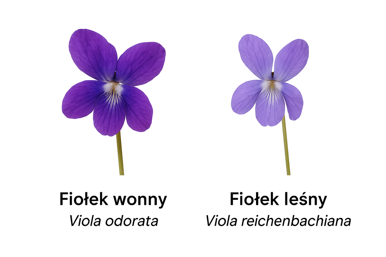 AI tak mi podsumowała różnicę pomiędzy Fiołkiem wonnym (Viola odorata) , a Fiołkiem leśnym (Viola rechenbachiana) ;