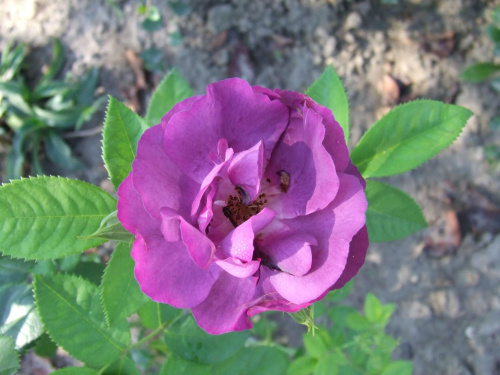 Róża o której mówisz to Rhapsody in blue, nie mylisz się, też taką masz, prawda? Moim zdaniem nie przebarwia sie na różowo, ale płatki też się sypią.