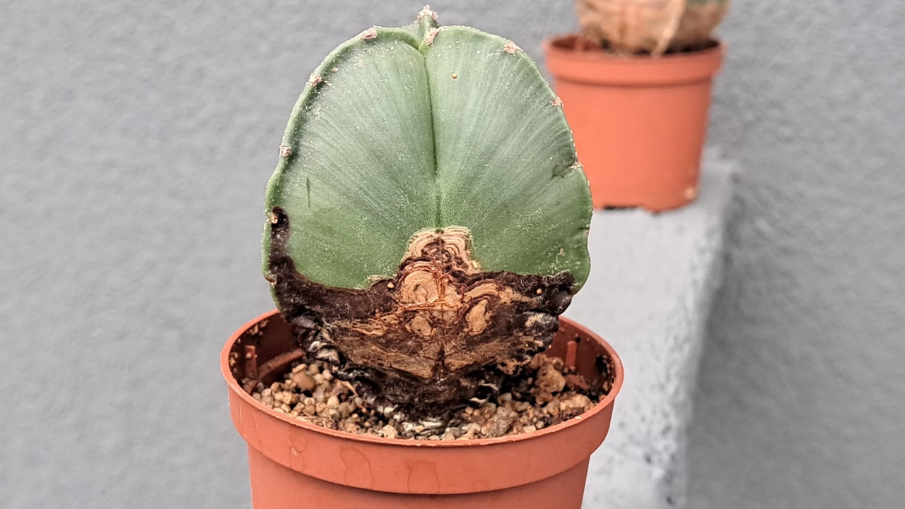 Witam, czy to zgnlizna ? Ew jak obetne zdrowe czesci kaktusa da sie uratowac pozostałe? Kaktus był przesadzany z 2 miesiace temu.