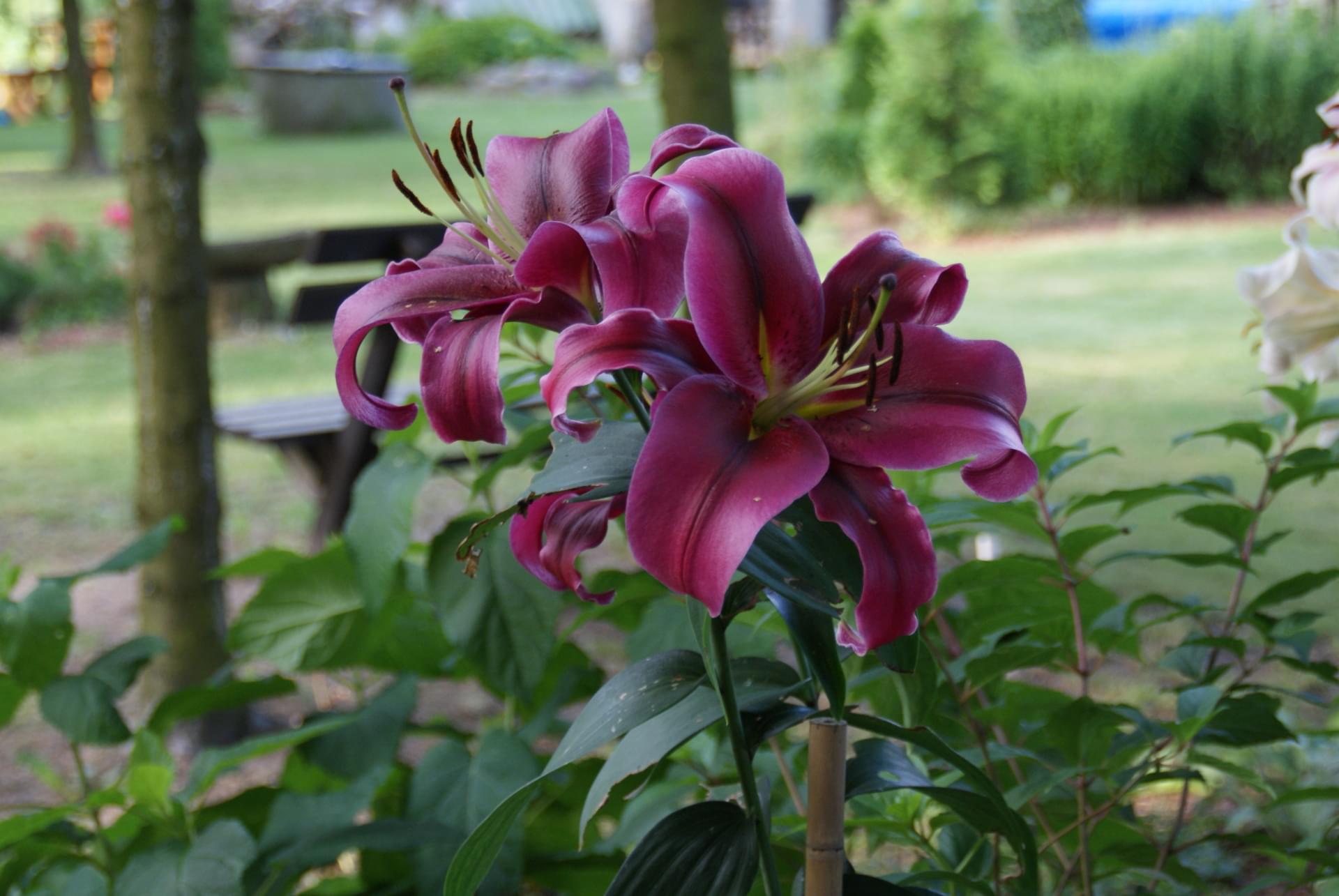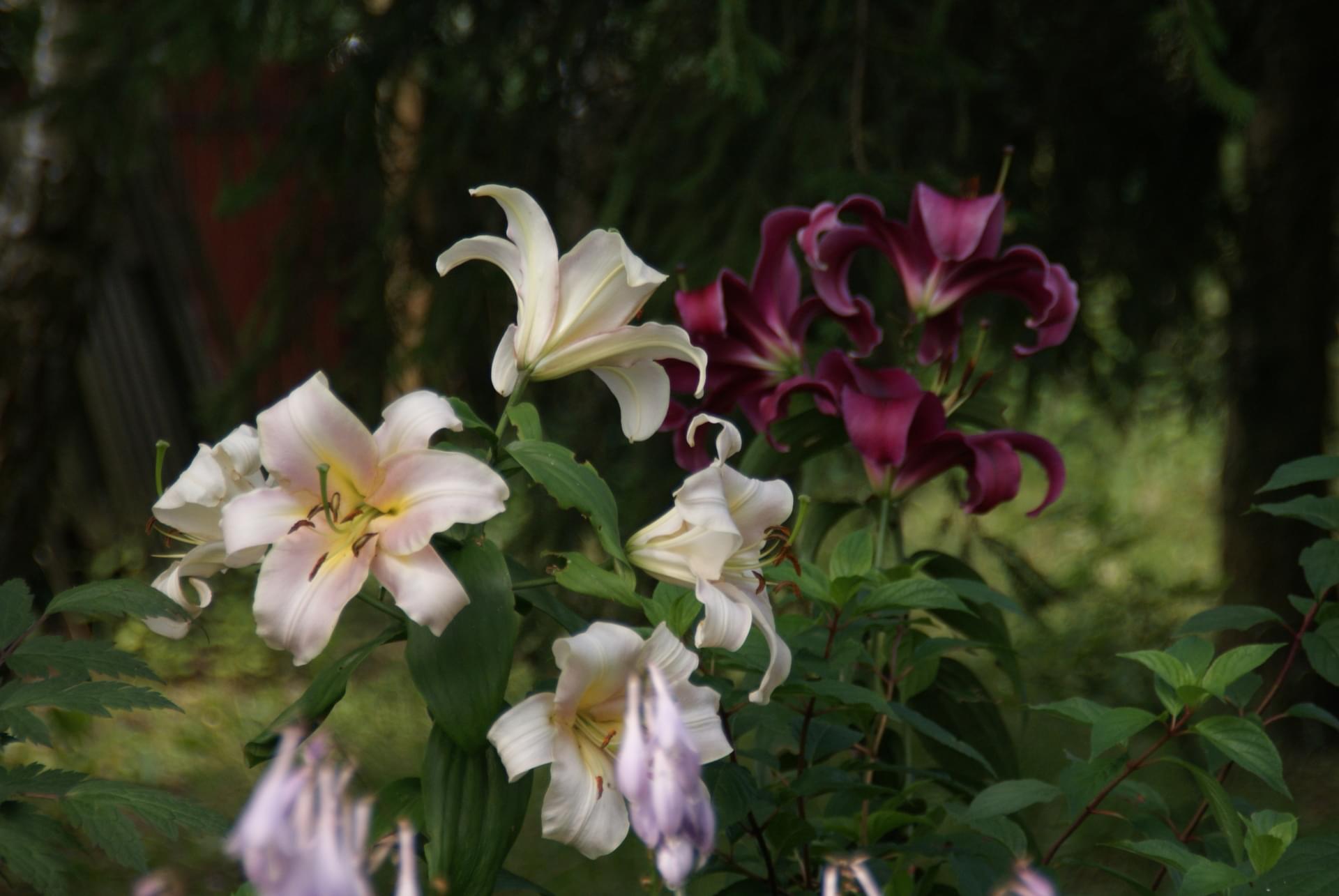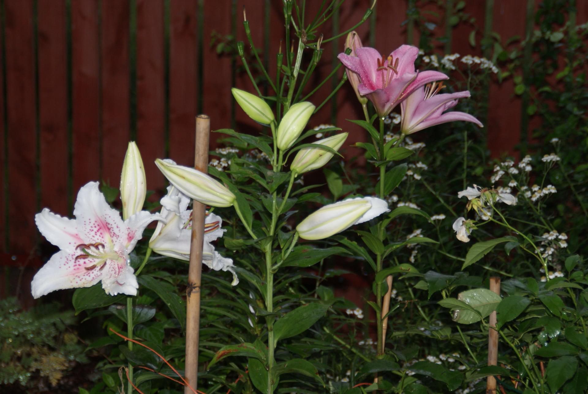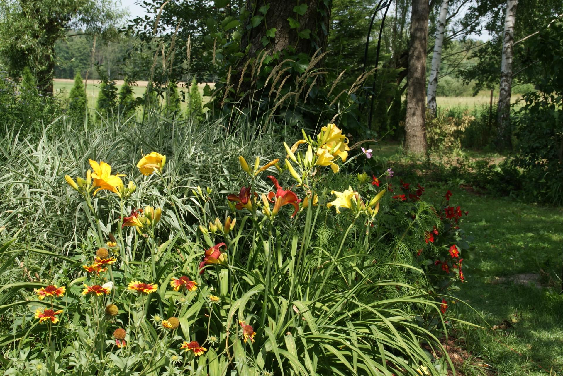 Liliowce super Ci kwitną. Moje jakoś nie mogą się rozrosnąć w wielkie kępy. Chyba mają za ciemno czy co? Ale przecież u Ciebie też pod drzewami.