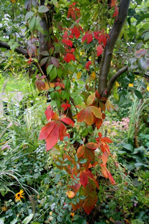 I winorośl, rosnąca sobie razem z różą...ach, może to i niepraktyczne, ale takie malownicze, dla takiego efektu warto się troszkę więcej napracować...piękna jesień u Ciebie!