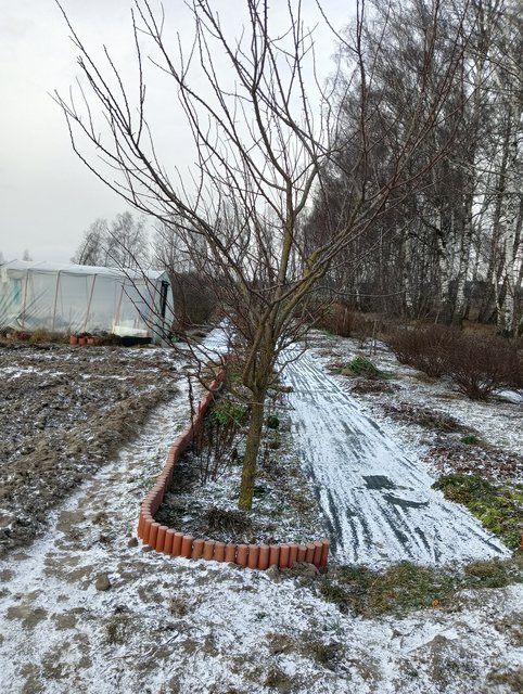 Zrazy zakopałam ,przycisnęłam deskami na nich rozłożyłam kawałek włókniny i zasypałam zrębkami i ziemią. Mam nadzieję że będzie ok.