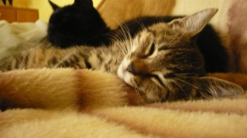 Prawdziwa kocia natura.Śpi, je, ginie na pół dnia, wraca z myszą, albo ptaszkiem a później pcha mi się do łóżka, wmawiając sobie uparcie, że nikt nie widzi